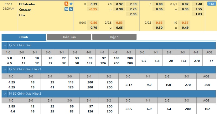 Chu kỳ lên xuống tỉ lệ kèo El Salvador vs Curacao