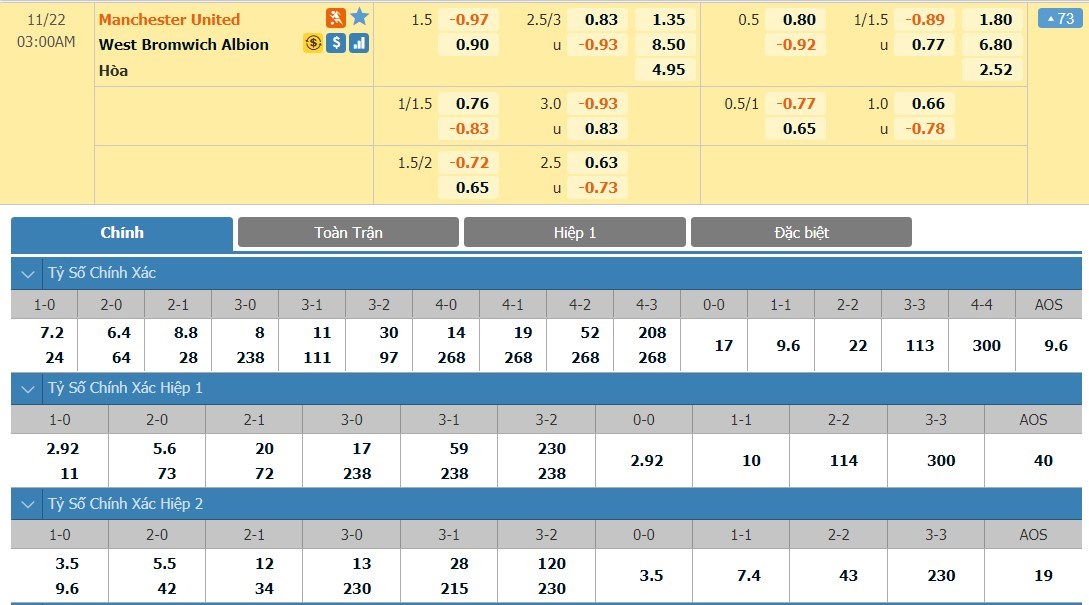 Chu kỳ lên xuống tỷ lệ kèo Manchester United vs West Bromwich Albion