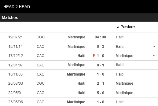 Haiti đã chơi 2 trận đấu chắc chắn cho đến lúc này và có lẽ đủ khả năng để đánh bại Martinique. Dù hàng công Haiti không hẳn mạnh nhưng chắc chắn họ có thể vượt qua một đội bóng đã thủng lưới 10 bàn thua từ 17 cú sút trúng đích trong 2 lượt trận đã qua.