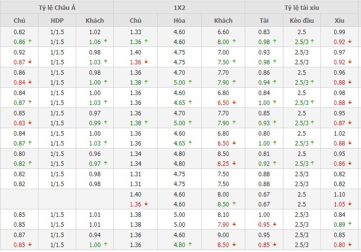 Chu kỳ lên xuống tỷ lệ kèo Pháp vs Áo