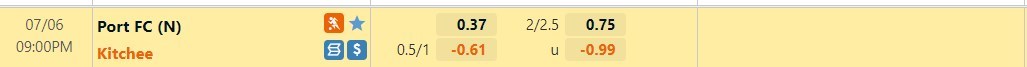 Tỷ lệ kèo cá cược bóng đá trực tuyến trận Port FC vs Kitchee