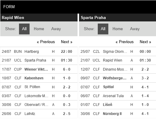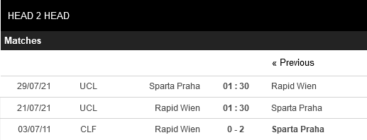 Thống kê đối đầu Rapid Wien vs Sparta Praha