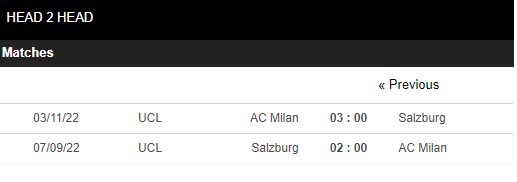 Thống kê đối đầu Red Bull Salzburg vs AC Milan