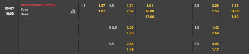 Xem tỉ lệ kèo cá cược bóng đá trực tuyến Ulsan Hyundai vs Kaya