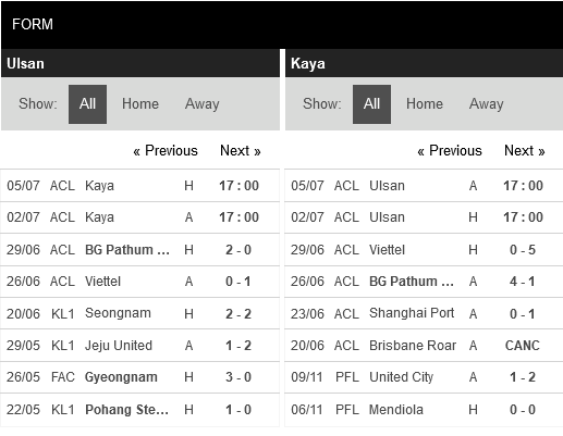 Thống kê phong độ Ulsan Hyundai vs Kaya